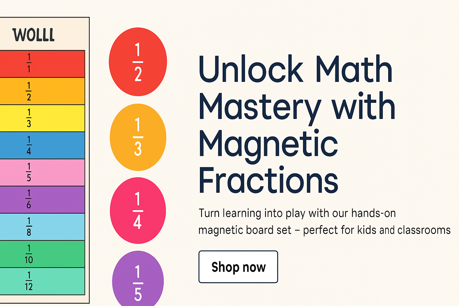 Transform how kids learn fractions with our magnetic board set. Featuring colorful fraction circles, bars, and dry-erase surfaces, this hands-on tool makes math visual, tactile, and fun. Whether you're a parent, teacher, or homeschooler, it's the perfect way to build confidence and understanding through interactive play. Say goodbye to confusion — and hello to fraction mastery.
